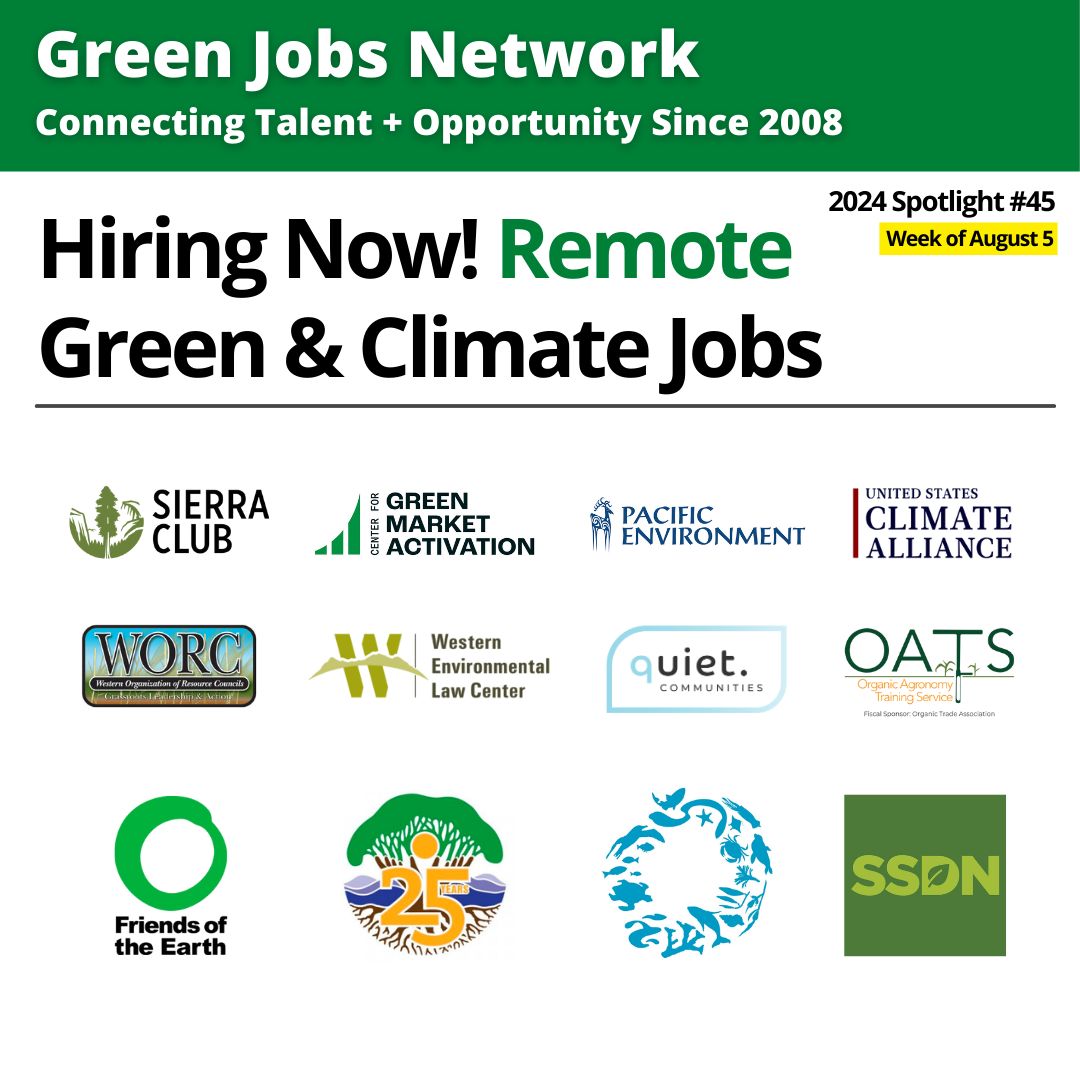 Please note that this newsletter contains only a sampling of the many jobs that you can find via Green Jobs Network. For more, visit our green jobs board, job board for climate action, and website for remote jobs.