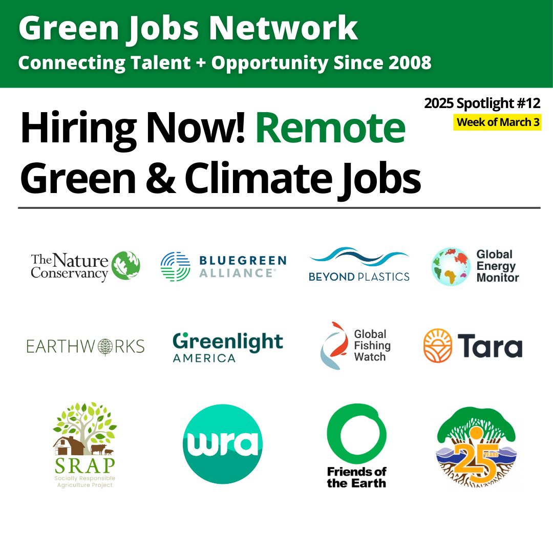 Please note that this newsletter contains only a sampling of the many jobs that you can find via Green Jobs Network. For more, visit our green jobs board, job board for climate action, social impact jobs board, and website for remote jobs.
