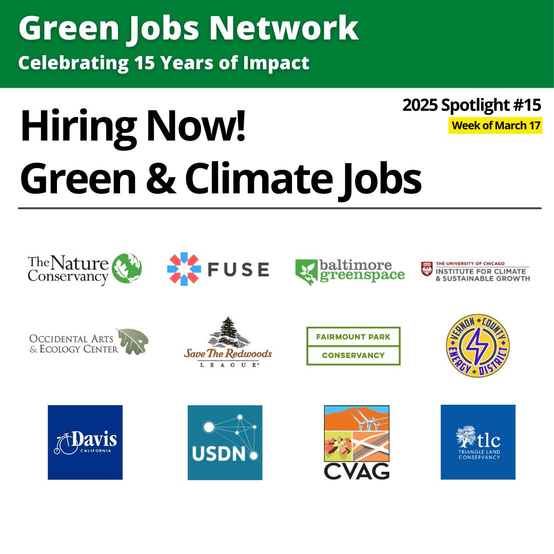 If your organization is hiring you can have your jobs spotlighted by Green Jobs Network by posting on our job boards or contact me via LinkedIn to learn about ways GJN can support your recruitment activities.
