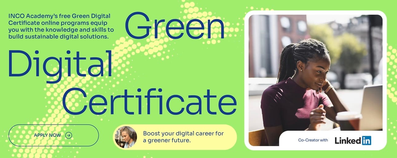 The application deadline is Friday, March 21 for the next cohort of INCO Academy’s free Green Digital Certificate program, which was co-created with LinkedIn and is designed to equip people with the knowledge and skills to build sustainable digital solutions.