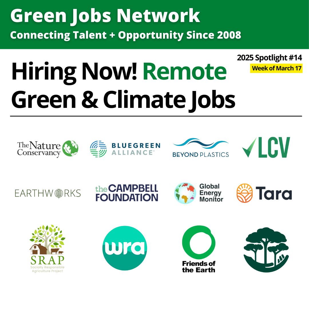 Please note that this newsletter contains only a sampling of the many jobs that you can find via Green Jobs Network. For more, visit our green jobs board, job board for climate action, social impact jobs board, and website for remote jobs.