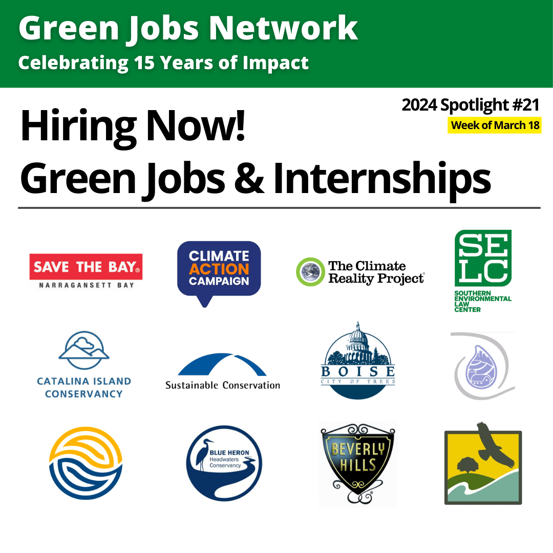 Welcome to the newest edition of the Green Jobs Network newsletter, featuring more than 100 jobs, internship & fellowship opportunities, and more! If you’d like to receive job alerts between newsletter editions you can follow Green Jobs Network on LinkedIn.