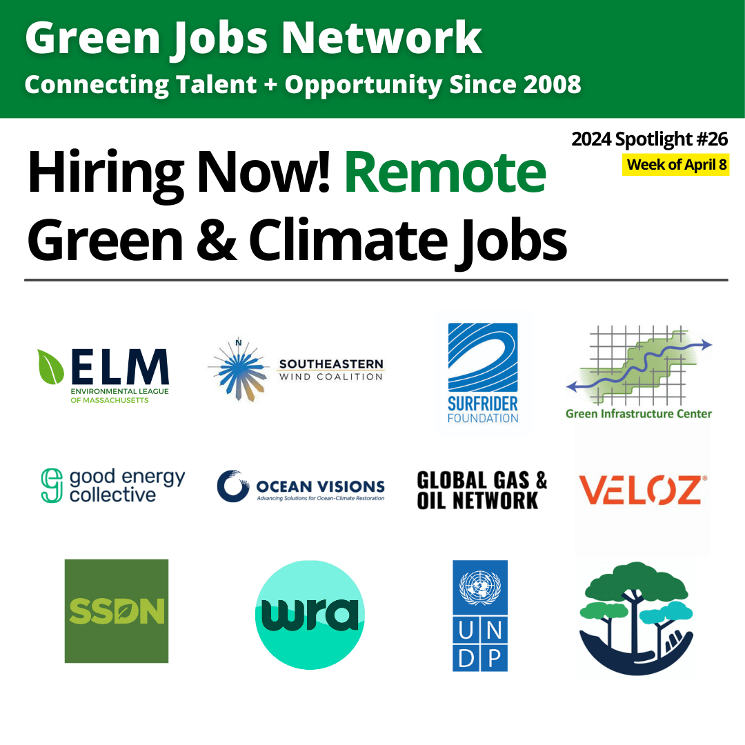 Please note that this newsletter contains only a sampling of the many jobs that you can find via Green Jobs Network. For more, visit our green jobs board, job board for climate action, and website for remote jobs.