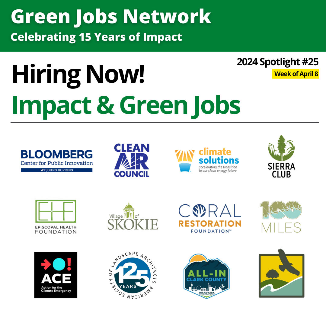 Welcome to the newest edition of the Green Jobs Network newsletter, featuring 100+ jobs, internship & fellowship opportunities, and more! If you’d like to receive job alerts between newsletter editions you can follow Green Jobs Network on LinkedIn.