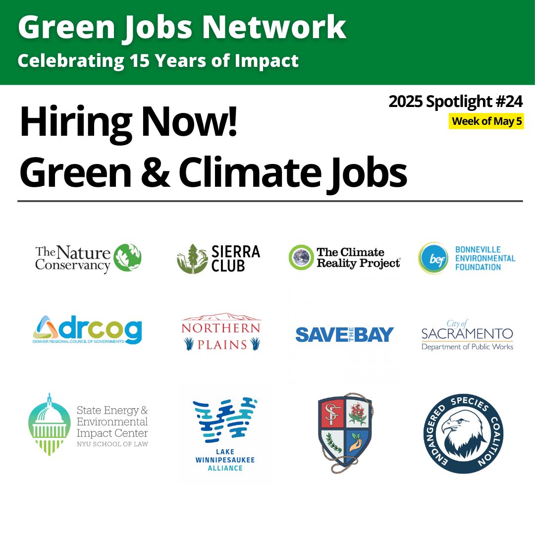 If your organization is hiring you can have your jobs spotlighted by Green Jobs Network by posting on our job boards or contact me via LinkedIn to learn about ways GJN can support your recruitment activities.