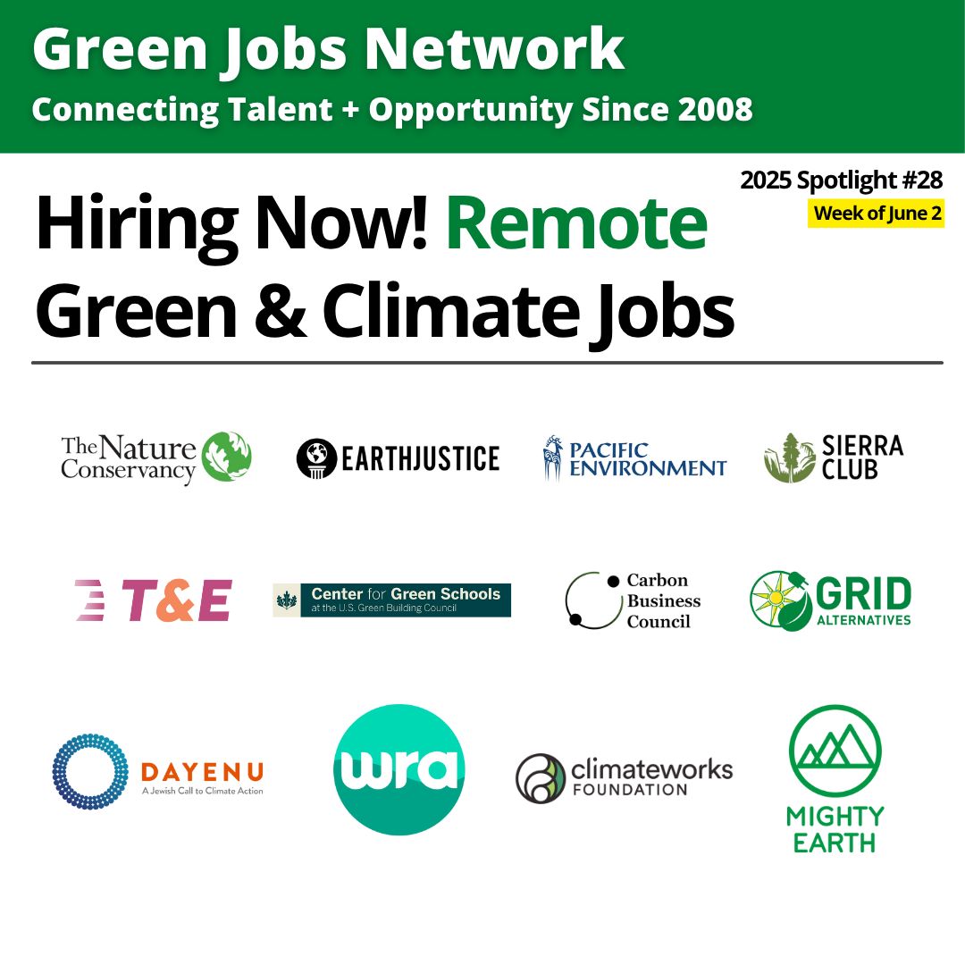You can view these and other remote jobs on the Green Jobs Network website RemoteClimateJobs.com.
