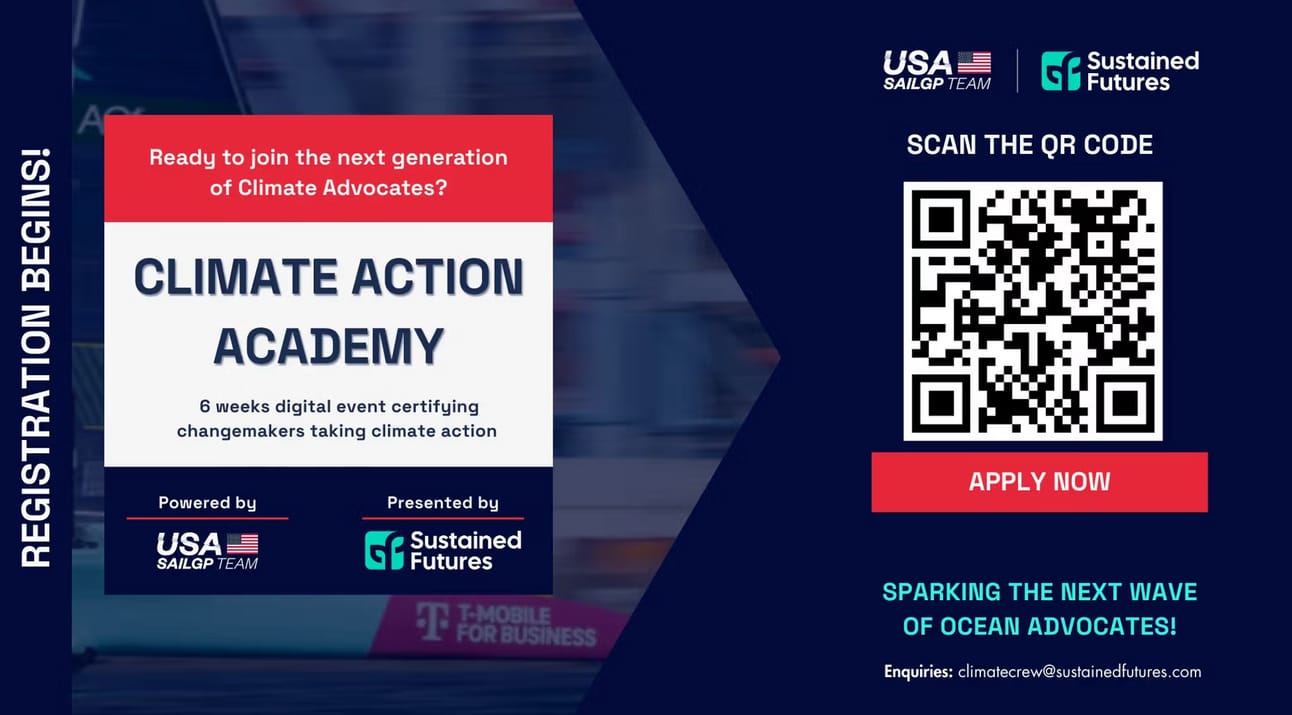 Applications are still being accepted for the U.S. SailGP Climate Action Academy, a partnership between the United States SailGP Team and Sustained Futures that is designed to empower young people with the tools, knowledge, and inspiration to become leaders in ocean and climate advocacy.