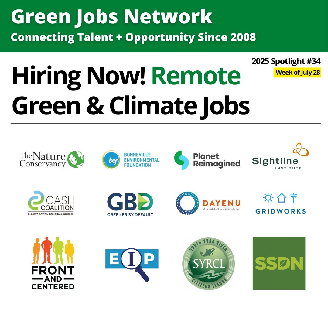 This newsletter contains a sampling of the many jobs that you can find via Green Jobs Network. For more, visit our green jobs board, job board for climate action, social impact jobs board, and website for remote jobs.