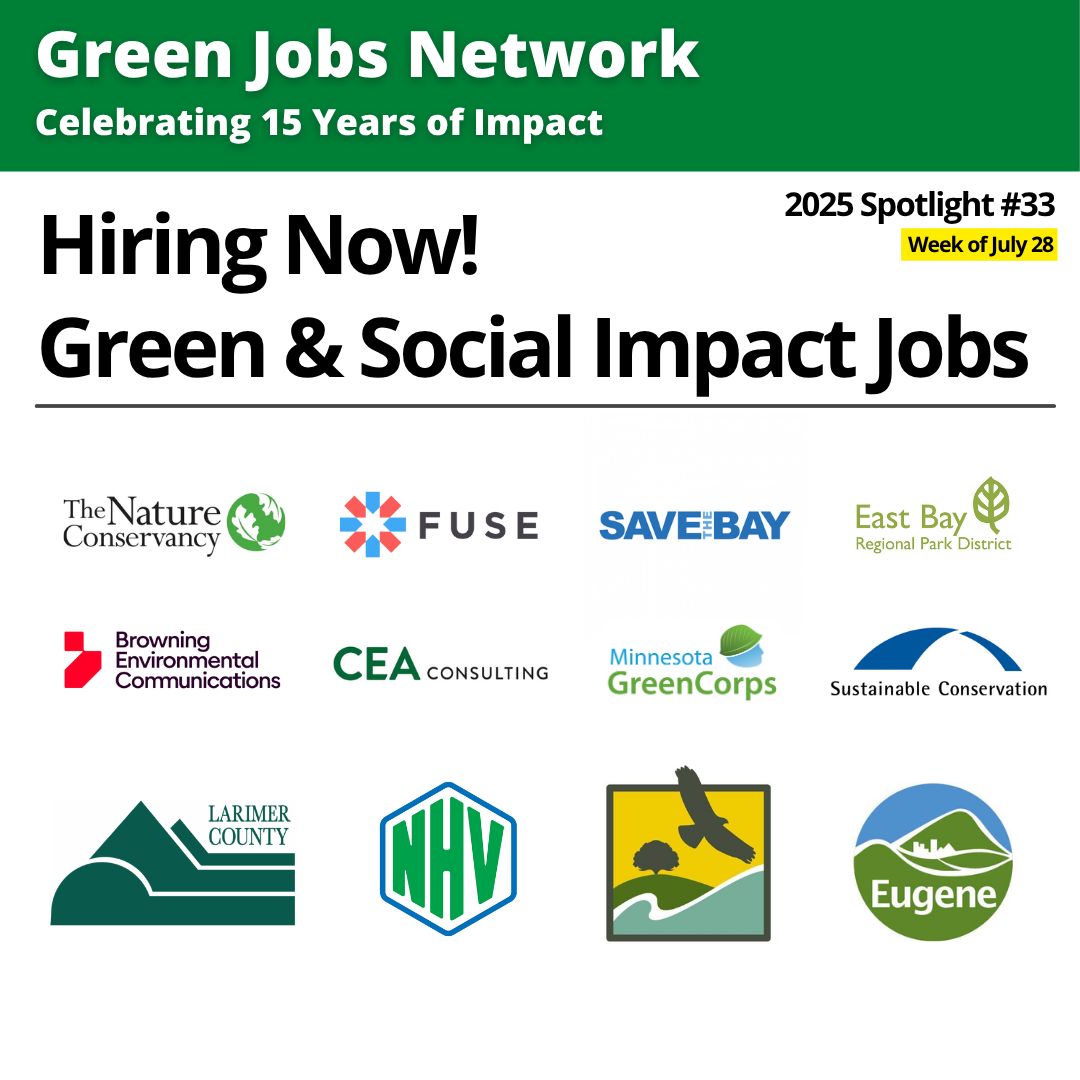 If your organization is hiring you can have your jobs spotlighted by Green Jobs Network by posting on our job boards or contact me via LinkedIn to learn about ways GJN can support your recruitment activities.