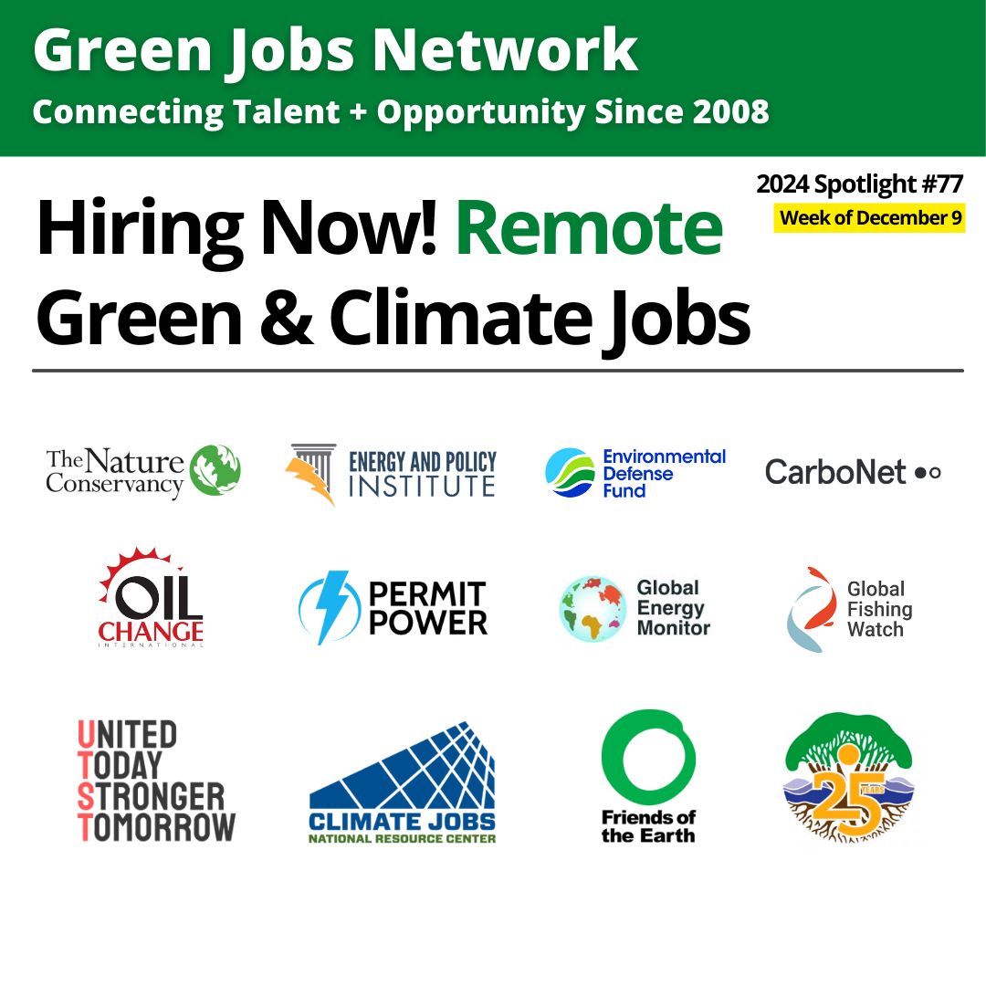 Please note that this newsletter contains only a sampling of the many jobs that you can find via Green Jobs Network. For more, visit our green jobs board, job board for climate action, and website for remote jobs.